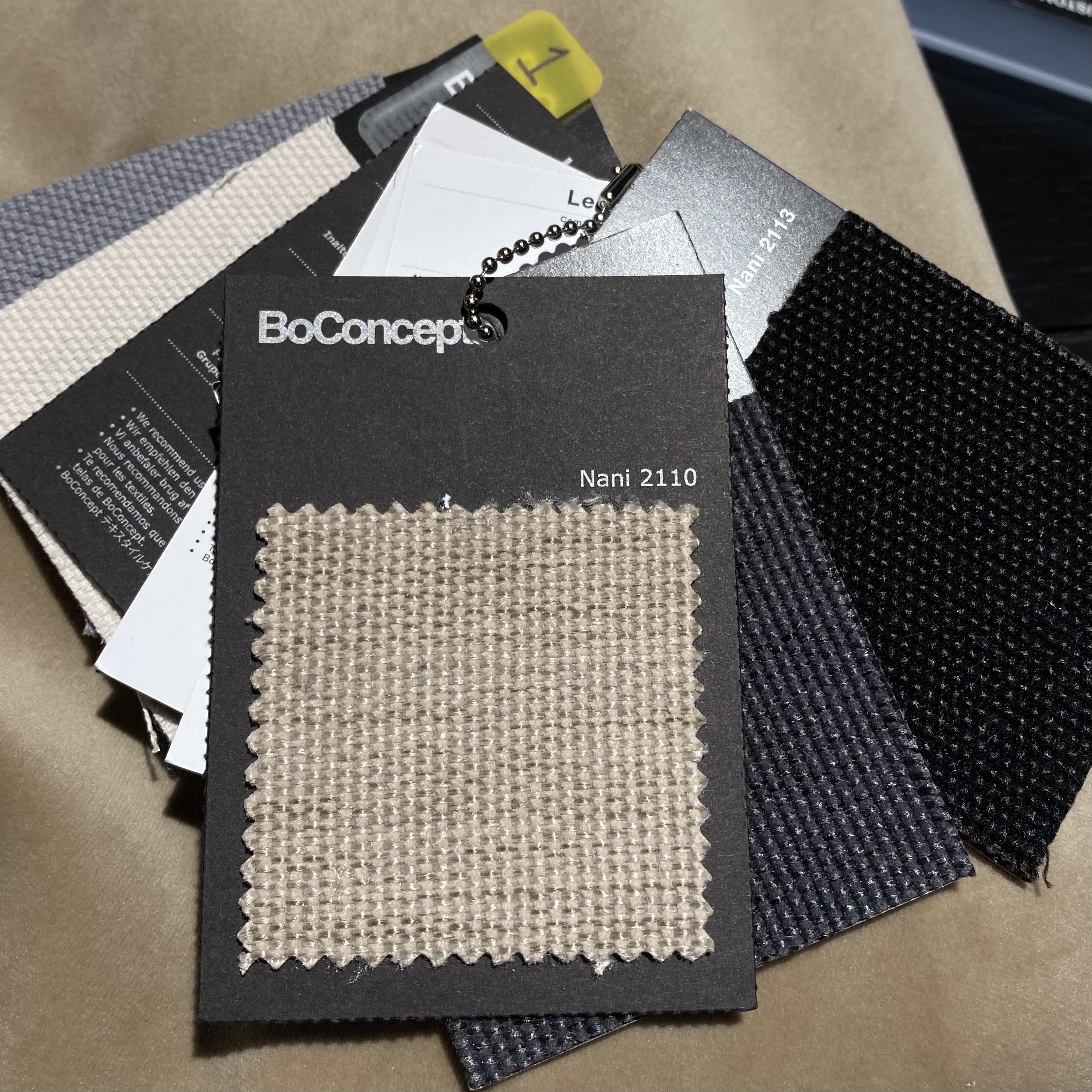패브릭은 상담하면서 너무 많은 이름을 들어서 정확하지는 않다. 오른쪽 소파에 올려져 있는 것이 다 패브릭 샘플들이다.