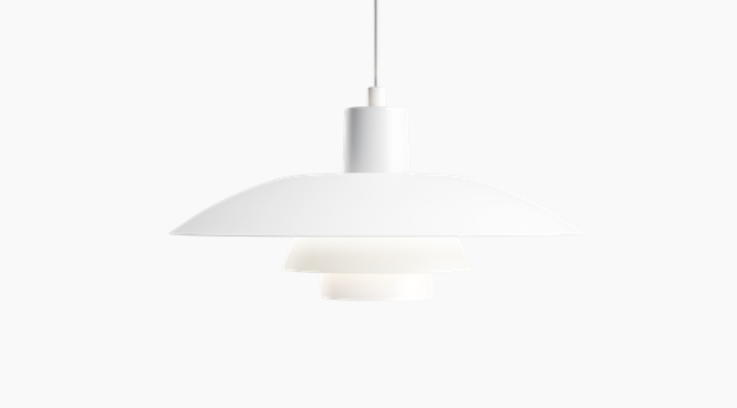 덴마크 디자인조명의 아이콘 '루이스폴센'의 PH4/3입니다.매트한 화이트컬러의 알루미늄 쉐이드가 3단으로 구성되어 있으며 서스펜션(소켓/본체)역시 화이트 알루미늄으로 마감처리 되어 모던하